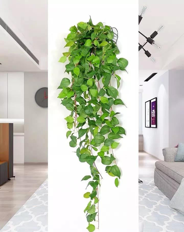 仿真植物壁挂吊兰,用下垂式的藤曼作为墙面装饰,自然的将绿色融入室内。